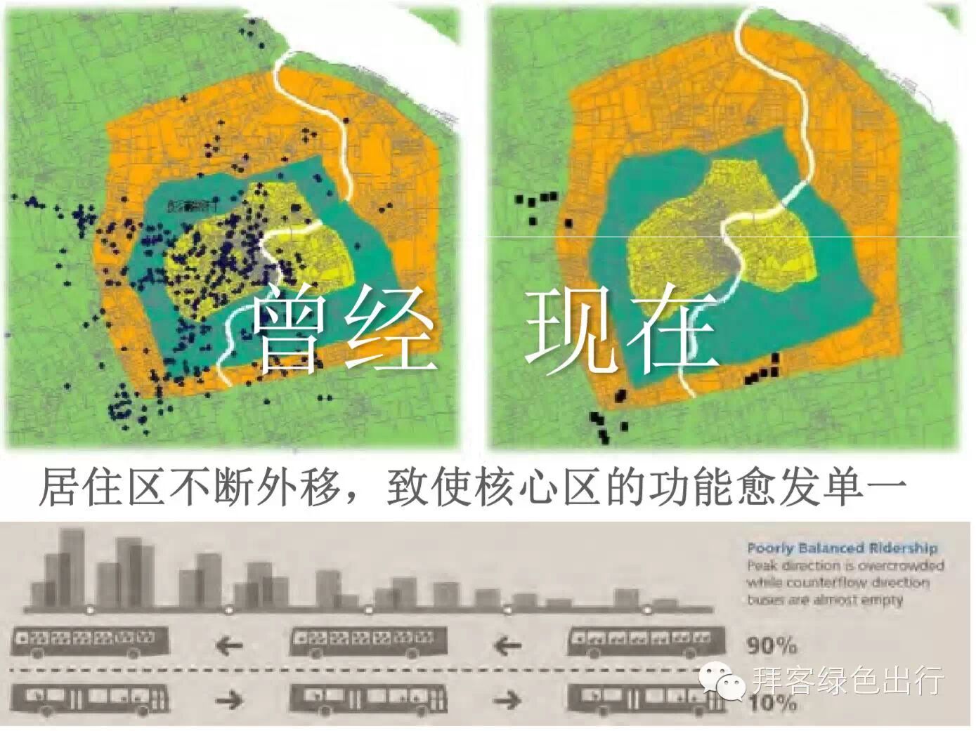 同时,人们居住的地方不断外移,使得如北京二环以内,广州天河区这些城市核心区的功能愈发单一。每天在这些地方上班的人们从郊区住的地方,被运送到市中心去上班。富人可以花钱开车,穷人只能花时间乘车,而路上处处塞车。