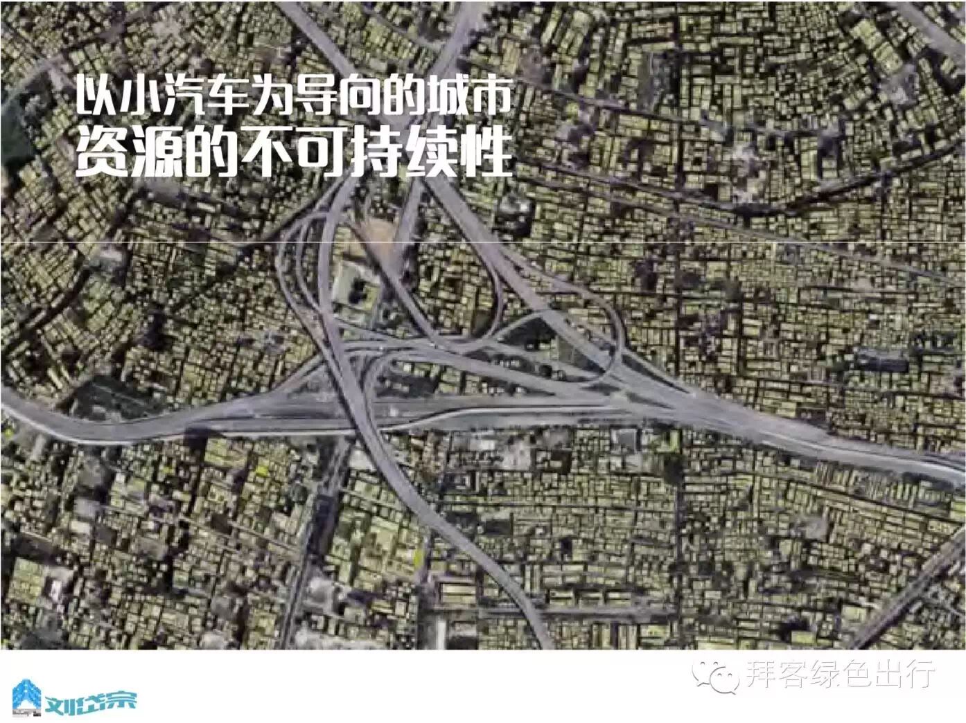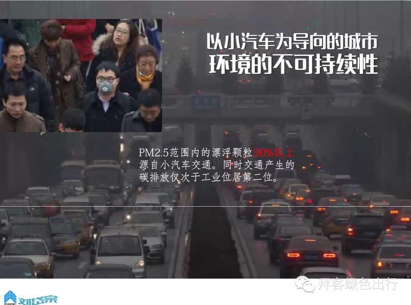据调查,PM2.5范围内的漂浮颗粒30%以上来自小汽车交通。同时交通产生的碳排放仅次于工业位居第二位。“穹顶之下”,每个人都受空气环境的影响,小汽车导向的城市发展带来的环境不可持续发人深省!