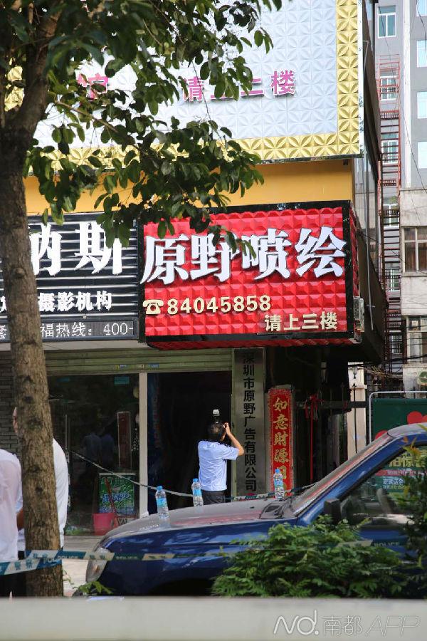 志健时代广场为一栋28层的居民楼,凶案现场位于距离志健时代广场约200米外的一家喷绘广告公司,该公司为死者一家所经营。
