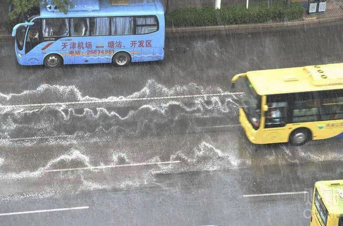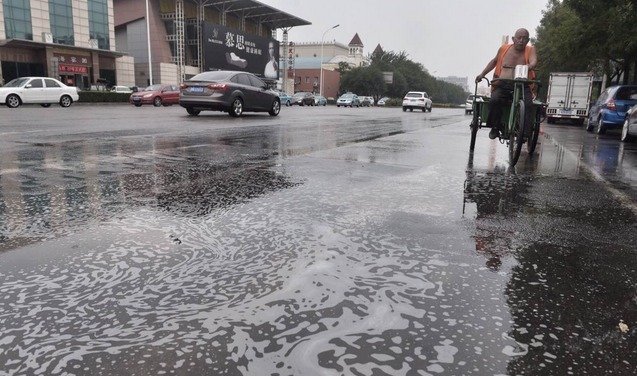 天津爆炸事故后首次降雨 路面现大量白色泡沫[复制链接]