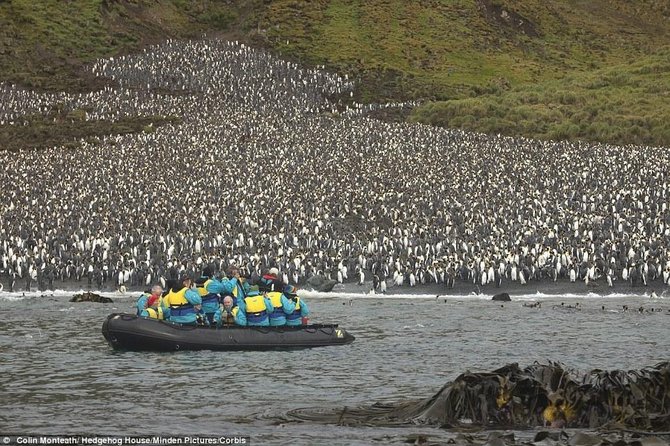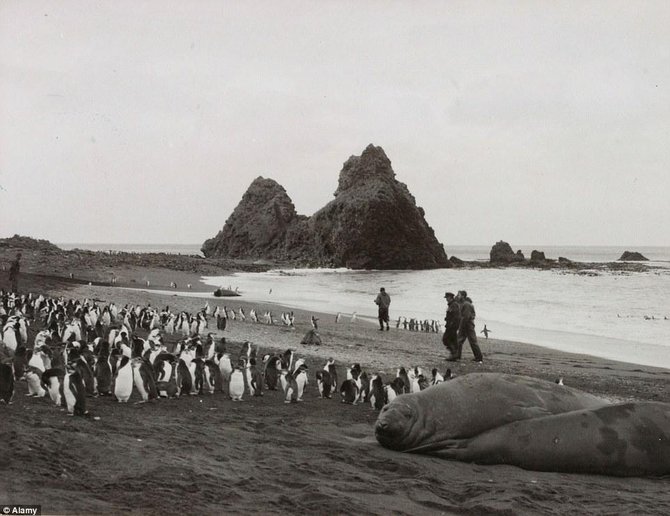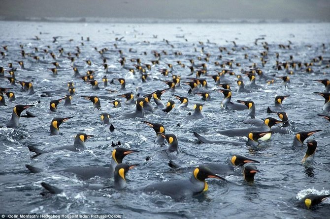 企鹅是一种憨态可掬的小动物,但对于密集恐惧症患者来说,下面的图片您可要慎重打开了。据英国《每日邮报》报道,在距澳洲大陆南部1500公里的海面上,有着一个名为麦夸里岛的神秘小岛。除了科考人员,这里常年无人居住,岛上的居民则是超过400万只企鹅和10万只海象与海豹,这密密麻麻的企鹅大军可谓是令人十分震撼。  麦夸里岛位于太平洋西南边陲,距澳大利亚大陆南端1500公里,相当于从澳洲到南极洲的一半路程。丰富的动物资源使其在1997年被列入世界遗产名录,也成为了世界上最南端的世界遗产,吸引着不少探险爱好者。  懒洋洋的海象和走路一摇一晃的企鹅是这里的主要居民。麦夸里岛上的400万只企鹅包括多个不同的品种,其中不乏帝企鹅和皇家企鹅等濒危物种。  皇家企鹅(左)是麦夸里岛的独有品种,这里是世界上唯一一个皇家企鹅的繁殖地;而企鹅家族中个头最大的帝企鹅(右)也在麦夸里岛上世代繁衍。  如果你认为企鹅只会在常年冰封的南极洲出现,那你就错了。麦夸里岛可是全是被绿色植物覆盖,除有80余种各类苔藓外,至少还有46种花卉,以及各式各样的硅藻类植物。 一群帝企鹅正欢乐地在海水里游泳。  这群皇家企鹅摇摇晃晃地走在沙滩上,样子十分呆萌。  可爱的海豹扎进企鹅堆儿里变成了个大家伙。  澳洲南极大陆处(AAD)在岛上建立了永久基地。基地科考人员为数不多,大约只有20人。此外,这里每年还会接待一些游客。  成年帝企鹅围着了一群小企鹅,在风浪大作的天气里,这样做可以让小企鹅更加温暖。  天气好的日子,企鹅们就会成群下水游泳抓鱼。  据记载,这群可爱的小动物已经在这里生活了上百年。图为上世纪50年代,科考人员上岛研究。  企鹅宝宝们正开心地在岛上玩耍。