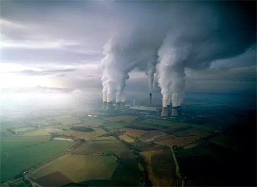 空气污染,英国的一家燃煤电厂在发电时所排放的大量二氧化碳以及水蒸气。