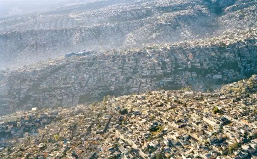 庞大的墨西哥城,人口2千多万,人口密度高达9610人 / 平方公里,触目所及,人们的居所遍布整个区域,自然环境可说荡然无存