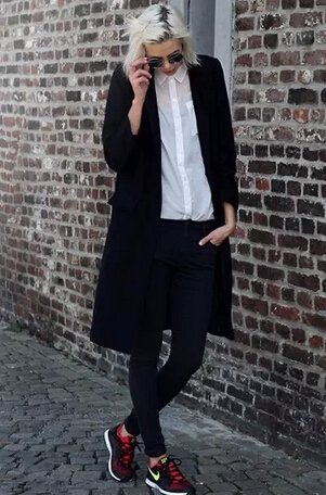 时尚界的大姐头是否真的没穿裤子哥不得而知,然而不得不说,这种穿法倒是真的将拉长腿部比例的视觉效果发挥得淋漓尽致。