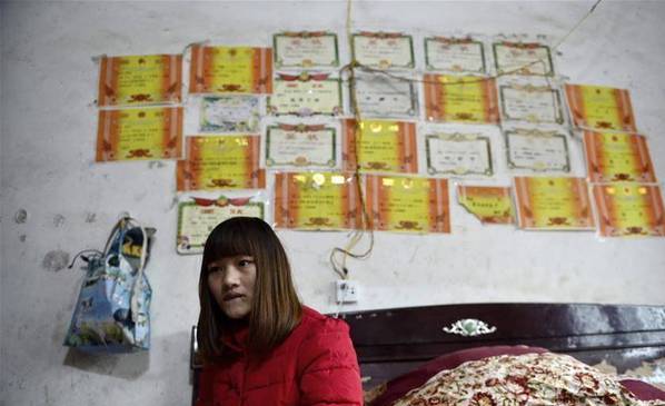 母亲生病期间,没读完初一的黄林辍学打工,成为家里的顶梁柱。母亲去世后,黄林放弃了在发廊理发的一份工作,照顾生病的弟弟和一家人的生活。图为11月24日,黄林坐在贴满奖状的房间里向记者讲述妈妈的离去和弟弟的病情。