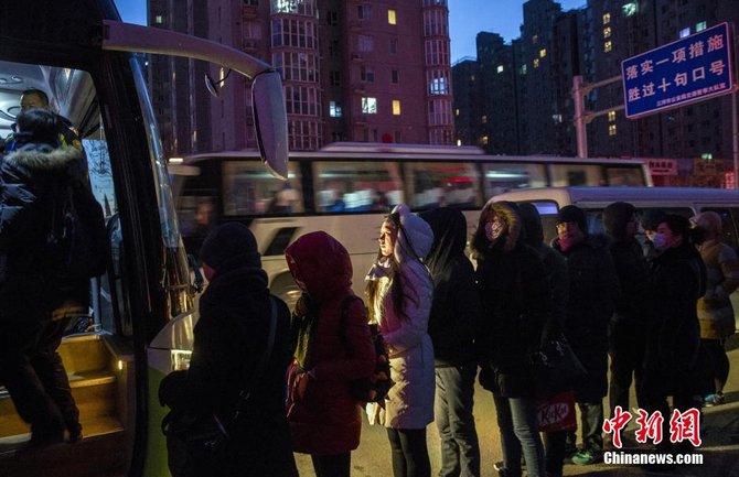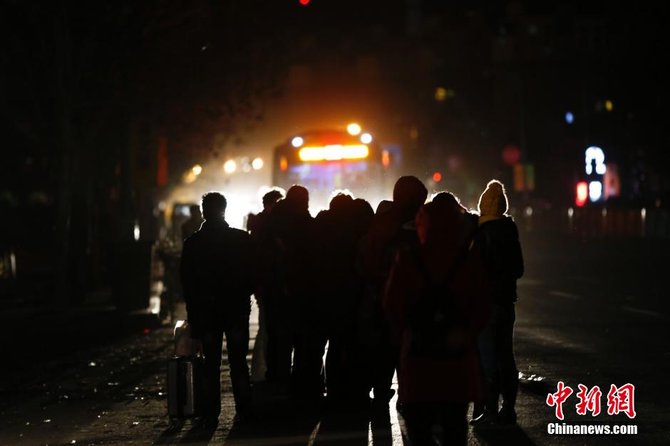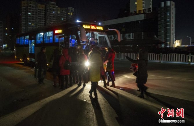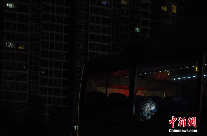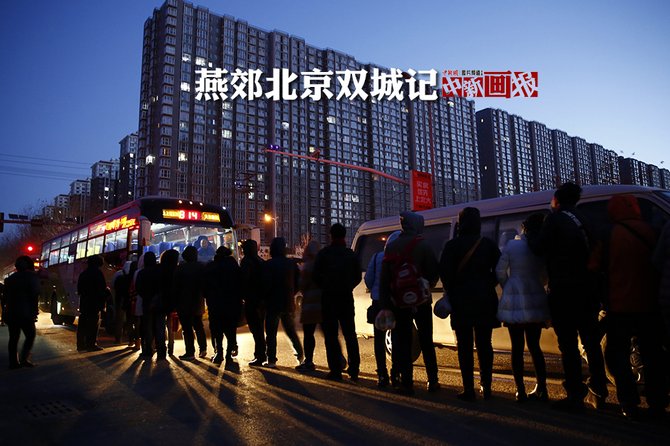 北京市委近日推出的“十三五”规划建议中,明确提出确保2017年市属行政事业单位整体或部分迁入通州区有实质性进展,同时再次强调了关于北京市人口规模调控问题。 河北燕郊距离政府新址的直线距离仅为3公里,首都功能疏解使得燕郊有望承载更多产业转移与升级,无论是机会、资金、人才、产业、项目等方面,燕郊都将面临一次重大转变。 而目前燕郊人的生活,最要紧的还是每天来北京上班,或许这种辛苦奔波的日子在不久的将来会成为一段 历史的记忆。 图为12月3日早上6点45分,燕郊排队等待去北京的乘客。 中新社记者 盛佳鹏 摄  图为12月3日早上6点,燕郊排队等待去北京的乘客。  图为12月3日早上5点半,燕郊上上城五期公交站前,排队在最前面的家长是要带4岁的孩子去北京儿童医院看病,他因为空气污染导致咳嗽不止。  图为12月3日早上5时30分,河北燕郊开往北京大望路的公交车下,刚刚替弟弟排完队的一名中年妇女注视着上车的弟弟,如果不提前排队,他不可能赶得上这最早开往北京的公交。  图为12月3日早上5时20分,燕郊上上城五期公交站前,卖早点的小贩赶到排队前往北京大望路的人群中,他们即将迎来当日的首班车,到达国贸只需要1个小时。  图为12月3日早上6时,一名女子正在追赶河北燕郊开往北京大望路的公交车。  图为12月3日早上6时,河北燕郊开往北京大望路的公交车下,上班族在寒风中排队上车。  图为12月3日早上6时,河北燕郊开往北京大望路的公交车上,乘客正在揉眼睛。  图为12月3日早上6点,一名男子在燕郊开往大望路车上一边看手机一边揉眼睛。  图为12月3日早上6点,河北燕郊开往北京大望路的公交车下,上班族准备排队,这时小区灯光亮的还很少。  图为12月3日早上6点,河北燕郊开往北京大望路的公交车倒映在公交站的广告牌上。  图为12月2日,燕郊密密麻麻的小区房屋。由于燕郊几乎与北京市政府新址只有一河之隔,但和通州还有近2万元的房价差距。  图为12月2日晚10时,燕郊的一个小区灯火通明。  图为12月2日晚上9点,从北京大望路回到燕郊的男子被三轮包围。  图为12月2日,燕郊两名小区的居民在打量雕塑,晚上九点后小区的灯光依然稀稀拉拉。  图为1月12日,25岁的王启龙在河北燕郊火车站去北京的动车上向外张望。他在朝阳门工作,周一到周五租住在亦庄,只有周末才能回燕郊的自己家。当日,燕郊通往北京的通勤动车正式开通,早上6点47分发往北京站。  图为1月11日,燕郊一个楼盘售楼处打出广告“中心在这,你在哪?”。  图为12月2日,晚上九点后燕郊一个小区的灯光依然稀稀拉拉,只有下面的小吃摊灯光通明,这是从北京上班归来的燕郊人最方便的吃饭去处。  图为1月11日,燕郊人周末到潮白河玩耍,对岸便是北京通州。