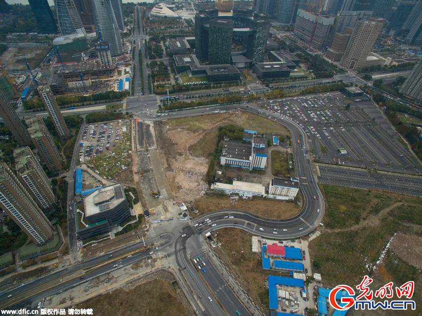 12月5日,杭州钱江新城,一条C字型的道路颇为惹眼。