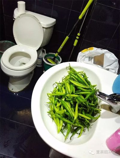 2016年7月28日,朝阳后现代城,雨花庭鸡参汤。蔬菜就在厕所的洗脸池里洗,马桶就在旁边。 与厕所战斗的不止童童,回龙观一家没有堂食只送外卖的“美佳小厨”,厕所紧挨橱柜。苍蝇不断飞到洗碗工杨威(化名)身上,杨威气急了,拿着一瓶杀虫剂,冲进厕所一阵喷。但是等他再打开厕所门,门口垃圾桶里苍蝇又嗡嗡起来,时不时落在新送来的菜和肉上。