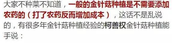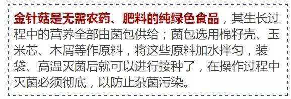 它 是 唯 一 不 用 农 药、化肥的蔬菜,人体脑黄金!不知道太亏    安全性:生长期不用农药、化肥   《重庆日报》采访 很多人不知道,以为菜市场买的菜都要打农药,其实不是的: 金针菇的种植就不需要化肥、农药,因为它生长特性决定的。当然,吃之前过水洗一下是必要的,您也不要太极端了,直接从菜场买回来就下锅哦,会吃一嘴灰的~  食疗价值:基本全包 由于金针菇的菌伞上含有一种叫“鸟苷—5一磷酸”增鲜剂,在味鲜上远胜于一般其它食用菌。 作为一种日常食物,金针菇高蛋白、低碳水化合物、高钾低钠的特性被众多营养学家所熟知。降低胆固醇、抑制血脂升高的作用让人已经得到公认。可谓是从老人到小孩都需要的健康菜。  食疗效果 或许是因为单纯的生长环境,“国医大师健康”咨询专家后整理发现,这个小小的金针菇不仅是安全,更加是健康: 促进脑发展 提供人体不能合成的氨基酸 化疗患者可以吃 降血脂、降胆固醇 抗疲劳,抗菌,菌丝还达医用标准 护肝,促进消化 1 促进脑发展 金针菇促进脑部发展有目共睹,它含有18种氨基酸,其中赖氨酸、精氨酸、亮氨酸含量尤多,这都是脑部营养特别需要的,能够增强记忆,开发智力。 长期食用金针菇对于一些考试的考生、孩子,以及希望锻炼、保持智力的老人很有促进作用。 2 提供人体不能合成的氨基酸 人体存在几种必须但是不能自身合成的氨基酸,其中赖氨酸尤其重要,科学测试显示: 成人每天对赖氨酸的生理需要量为1克左右,儿童需要量则相对要多一些。 而金针菇中赖氮酸含量高于其他菇类,故经常食用金针菇,可快速补充体内所需的赖氨酸量,解决人体的需求问题。  3 化疗患者可以多吃 由于肿瘤患者在接受放射治疗或化疗过程中会产生较多不良反应,专家建议放化疗者宜多吃金针菇,因为其含有的“朴菇素”,能有效帮助减小不良反应,帮助您和肿瘤战斗! 4 降血脂、降胆固醇 数据显示:金针菇是高蛋白(100克中含有31.3克),低脂肪(100克中含有5.8克),适于高血脂,肥胖症患者食用。 特别是一些中老年人的胆固醇含量很高,如果不能及时控制会影响到身体健康。 所以,平时老年多吃些金针菇吧,可以有效的降低体内的胆固醇含量。 5 抗疲劳、抗炎、菌丝医用 金针菇还含有一种碱性蛋白质的特殊物质——“金针素”,能增强机体免疫系统防御功能的活力,这个元素使得食用金针菇具有抵抗疲劳、抗菌消炎、消除重金属盐类物质的作用。 有报道显示:日本医学家已用培养的金针菇菌丝用于癌症的治疗。  6 护肝脏 营养学家认为:金针菇中的精氨酸对机体具有十分重要的作用。长期患有肝炎、肝硬化、肝癌等肝脏疾病的患者,会发生血液中氨浓度增高而中毒,由此而引发肝昏迷。 经常食用金针菇摄取机体必需的精氨酸,能明显地解除氨中毒,对预防肝昏迷的发生有积极的效果。 7 增进食欲、帮助消化 金针菇对单纯性儿童肥胖症还有减肥效果,国外养学家称其为“减肥菇”。食用方法是金针菇煮面。 另外,它特有的条状造型更能促进胃肠的蠕动,将体内废物及时排出体外~ 0农药食疗方 增强免疫提,生命添活力! 金针菇番茄汤鲜香可口且滋补养生,能够增强免疫力,提高机体的生命活力,在此推荐给所有朋友。 大家可不要小看这两种普通的食材,金针菇富含人体必需氨基酸以及特别的生物活性物质(朴菇素、朴菇多糖)它们能够 调补气血,扶正固本! 加上富含茄红素的番茄, 抗氧化、抗炎症、调节免疫力的能力更强!不仅味道鲜美、色泽搭配,更是食疗佳品。  配料 金针菇、西红柿、芡粉准备好。 做法 金针菇去根洗净,同切片的西红柿一起备用; 热锅,先放西红柿,再放金针菇,一起翻炒,加油盐,然后加入清水煮开; 芡粉调水,出锅前淋入,这样能够让菜色更加浓郁。不喜欢芡粉的也可以不勾兑。 出锅前加点香油吧! 金针菇可真是生长期唯一不用农药、化肥的蔬菜,它的本领可不小,老人小孩都需要的“脑黄金”,安全餐桌必备菜肴哦,值得发给每个朋友看看!